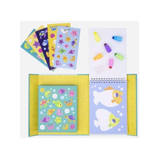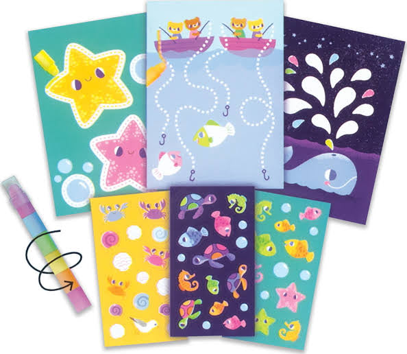 ¡El juego perfecto para colorear y actividades para manos pequeñas! Usa los crayones para colorear, dibujar y completar las divertidas hojas de actividades temáticas de la playa, luego decora todo con un montón de pegatinas.