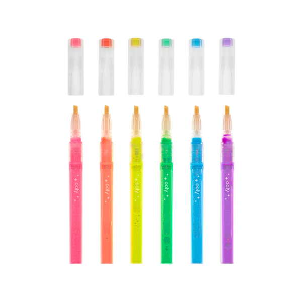 Ilumina tu día con los marcadores líquidos Oh My Glitter! Este set de 6 colores de neón tiene tinta brillante y puntas biseladas para versatilidad. Estos marcadores harán que tu planificador, calendario o diario sean aún más llamativos.