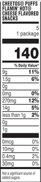 Disfruta de los Cheetos Flamin’ Hot Puff Mini, un snack horneado que combina un sabor intenso y picante con una textura ligera y crujiente. Libres de gluten, son ideales para quienes buscan un aperitivo sabroso y apto para dietas sin gluten. Perfectos para compartir o disfrutar en cualquier momento, estos puffs ofrecen una experiencia de sabor única y auténtica.