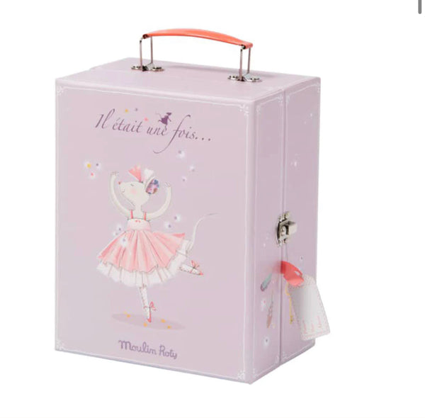 ¡La pequeña ratoncita bailarina de la colección Once Upon a Time está encantada de invitarnos a ver su guardarropa! Un armario maleta para el peluche con espejo incorporado, barra de madera, perchas estampadas y tres tutús brillantes. Ya sea para el ballet El lago de los cisnes o el Cascanueces, nuestra muñeca prima ballerina lucirá elegante hasta la punta de sus zapatillas de punta.