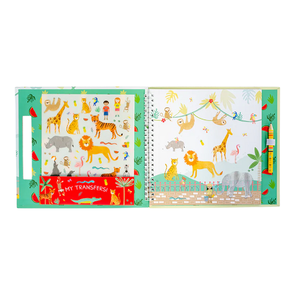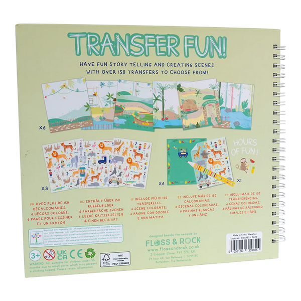 ¡Hay mucha diversión con las transferencias! Esta diversión de transferencia de la selva viene con más de 150 brillantes transferencias temáticas de la selva, 6 escenas coloridas para colocarlas, 6 páginas simples para garabatos de estilo libre y un lápiz. Abra el libro encuadernado en espiral para encontrar todas sus transferencias cuidadosamente almacenadas en el bolsillo "Mis transferencias", encuentre la ilustración que haya elegido y desplácese por las páginas para encontrar la escena perfecta para ponerlas. Rasca la parte superior del dibujo con el lápiz Floss & Rock proporcionado y levanta la hoja, como MAGIC, los encontrarás transferidos a la página. Pasa muchas horas felices despertando creatividad y haciendo hermosas fotos con leones, tigres, jirafas, perezosos y más.
