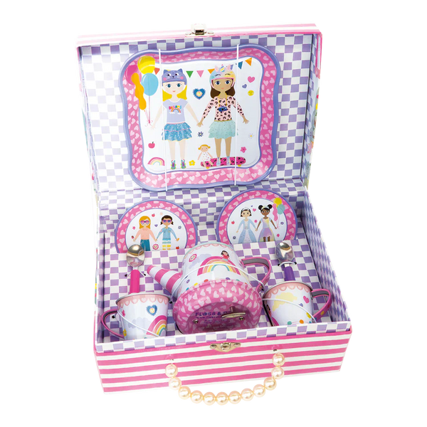 El Juego de Té Musical Casa de Muñecas de Floss & Rock encantará a los pequeños anfitriones con su diseño dulce y lleno de detalles. Este set de 9 piezas de hojalata está decorado con ilustraciones inspiradas en una adorable casa de muñecas, con flores, interiores acogedores y simpáticos personajes.
