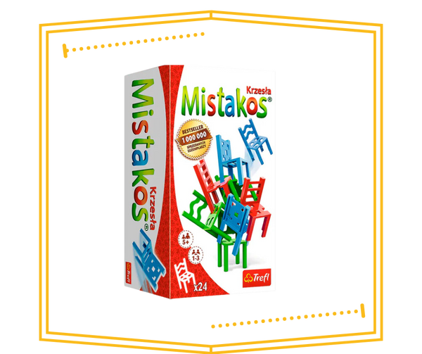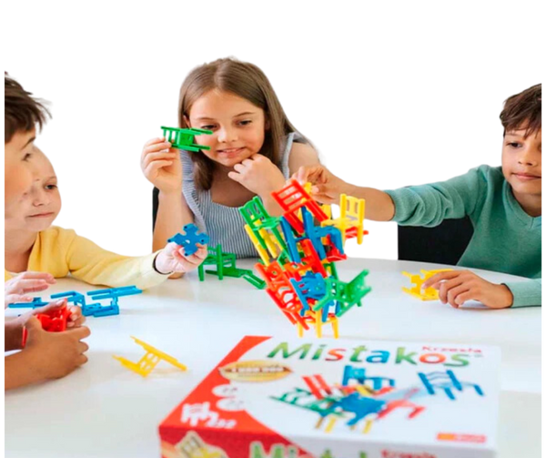 Pon a prueba tu pulso, estrategia y nervios de acero con Mistakos, el juego de apilamiento que convierte algo tan simple como una silla en pura diversión. Perfecto para jugar en familia o con amigos, este clásico moderno promete risas, tensión y mucha emoción en cada turno.