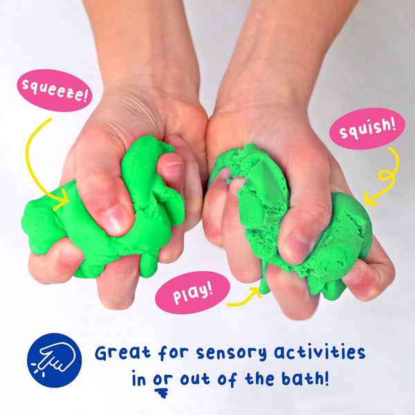 Esta masa moldeable para el baño permite que los niños den rienda suelta a su creatividad mientras se limpian. Con su vibrante color verde y delicioso aroma a sandía, transforma un baño común en una aventura artística. Cada frasco rinde para varios baños, ofreciendo una actividad divertida y relajante que también fomenta el aprendizaje STEM y STEAM.